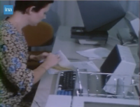 L’informatique menace t’elle l’emploi ?Dans une banque :signature de chèque, bordereau de banque, Interview de Jean Claude FRABOT (comptes clients crédit lyonnais) sur la reconversion du personnel le recours systématique a la mise à la retraite, les incitations à la démission etc… Pour résoudre les problèmes des employés en surnombre depuis l’automatisation. Interview d’une employée reconvertie sur les listings. Interview de Pierre LE BRETON (CFDT. Banques) sur les problèmes créés par l’utilisation de l’informatique, les menaces qui pèsent sur l’emploi dans les banques ou des réductions de personnel sont déjà prévues. Interview Jean Hervé LORENZI auteur de postes volés : on n’embauche presque plus et même on débauche car on profite des retraites, démissions, etc…Pour ne pas combler les postes vacants-mais en contrepartie il faut considérer que le matériel informatique crée des emplois de réparateurs, mais en nombre très restreint.
