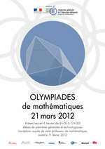 Les inscriptions aux olympiades de premières 2012 sont ouvertes jusqu’au 11 février 2012, sauf pour l’Académie de Versailles où elles sont ouvertes jusqu’au 16 décembre 2011.