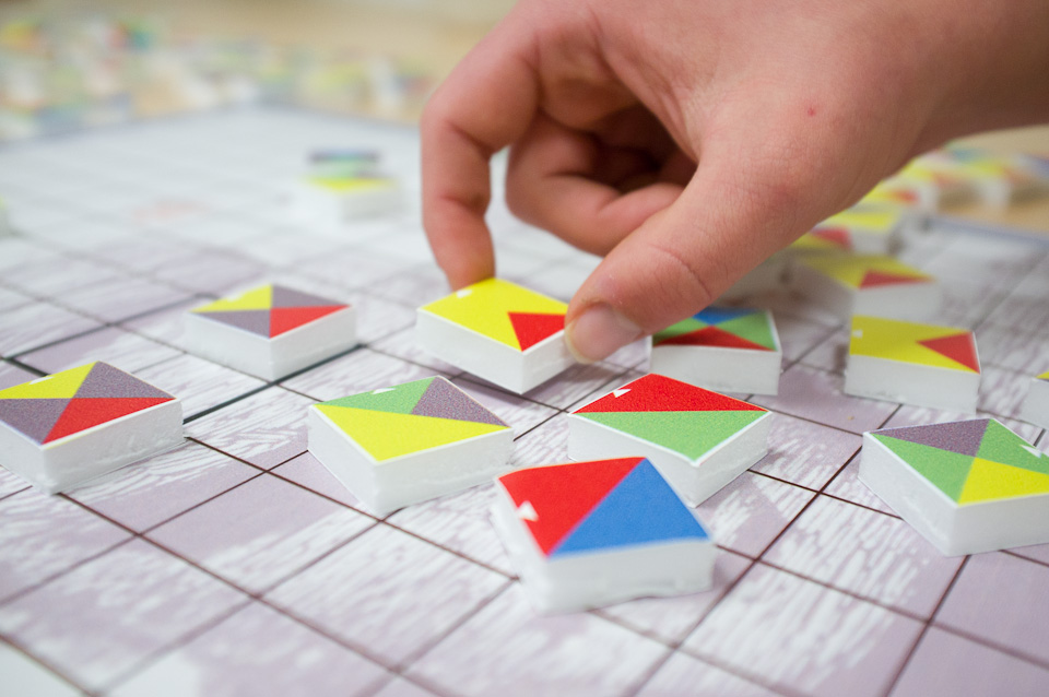 C’est le puzzle de Wang (pavages) qui a eu le plus de succès auprès des plus jeunes. Pour les profs ce sont le fonctionnement de l’Enigma et la calculatrice à billes.